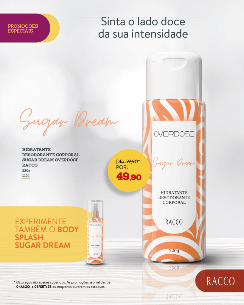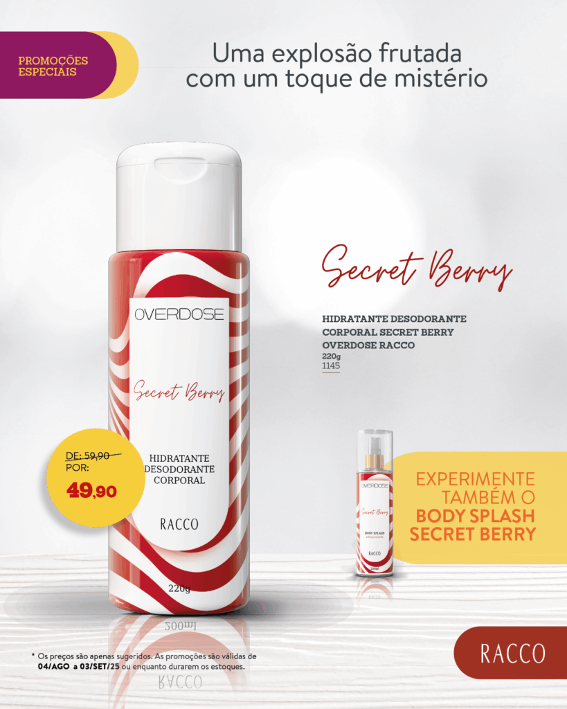 • Hidratantes Overdose Sugar Dream / Secret Berry (1114 / 1145) De R$ 59,90 por R$ 49,90