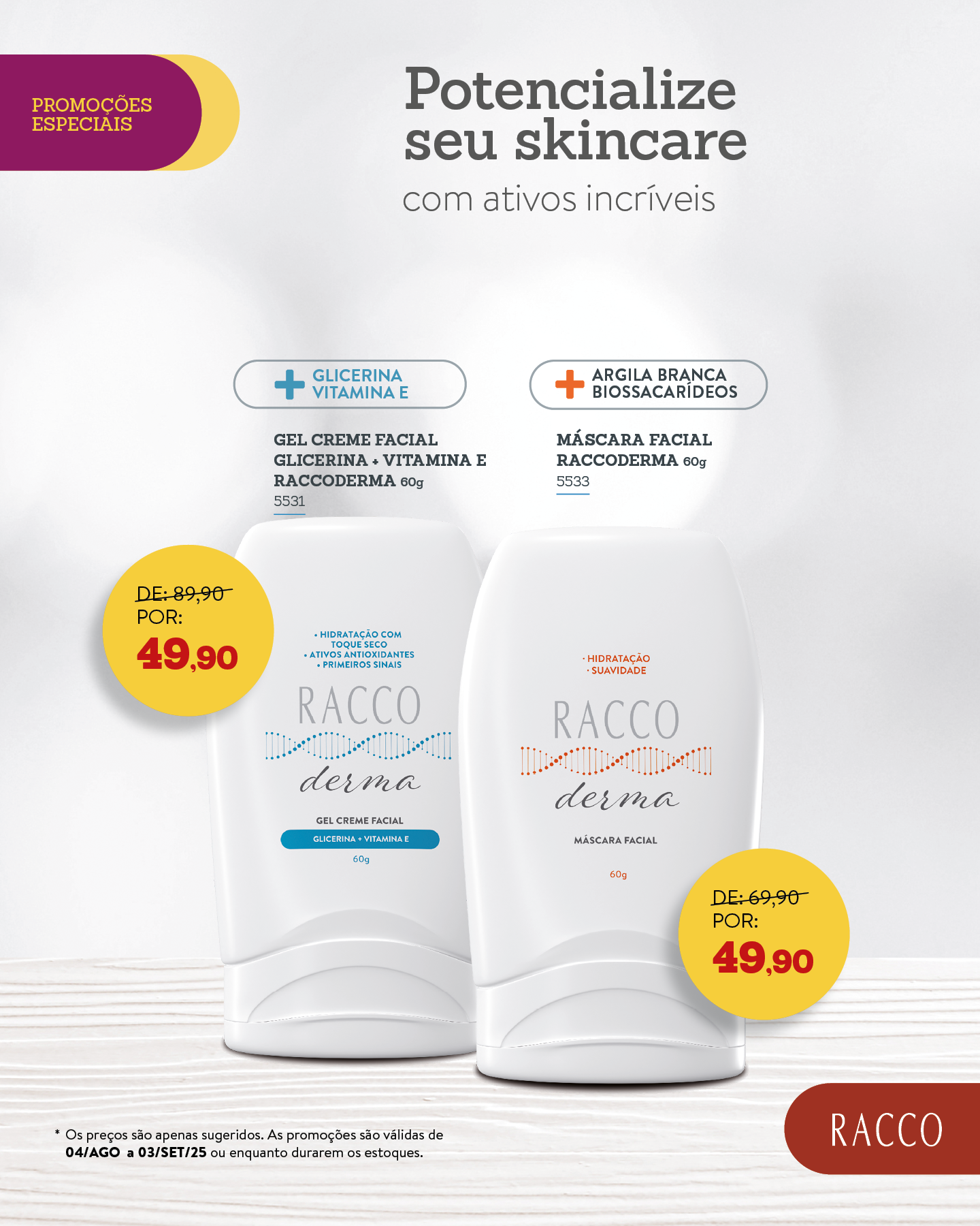 Além dos produtos em promoção, a Racco oferece um portfólio completo e diversificado, com opções para todas as necessidades dos seus clientes. Aproveite para conhecer e estudar cada item, entender seus benefícios e diferenciais e, assim, ampliar suas oportunidades de venda. Quanto mais você domina o portfólio, mais preparada estará para oferecer soluções personalizadas e conquistar resultados ainda melhores!