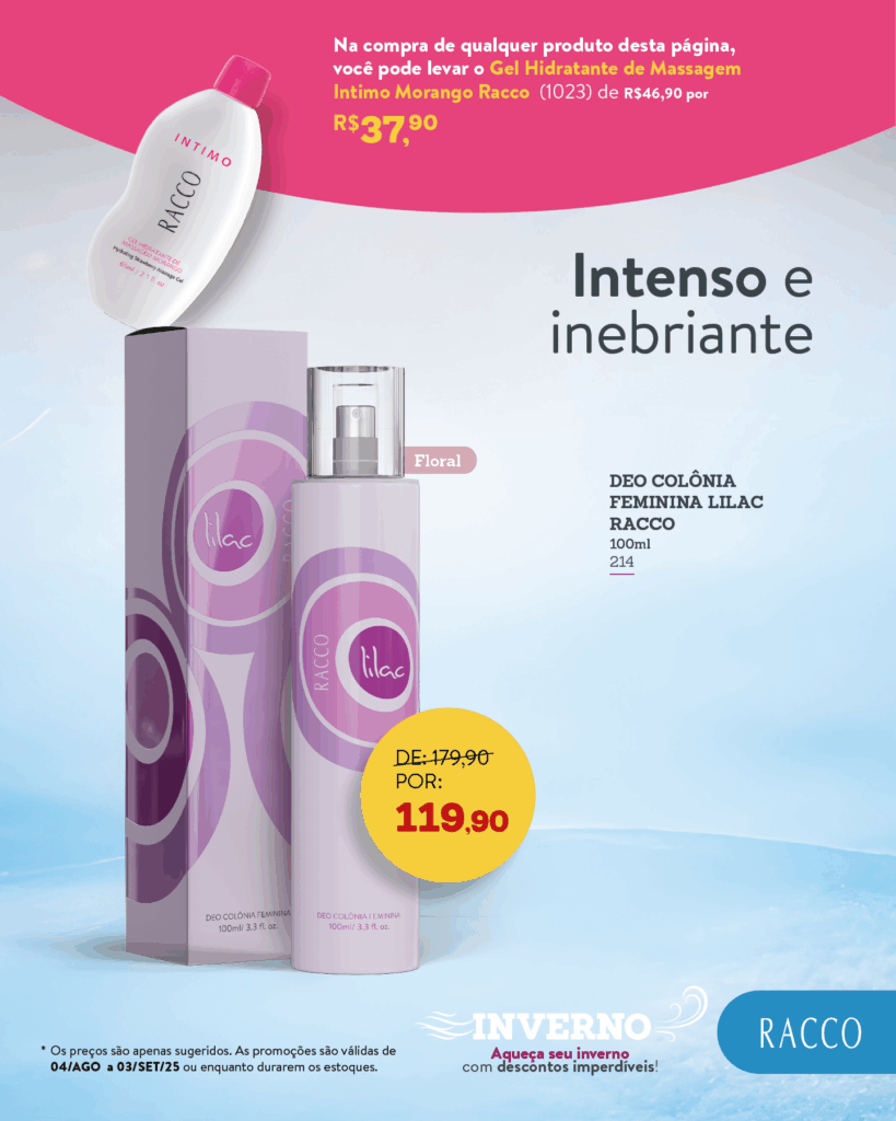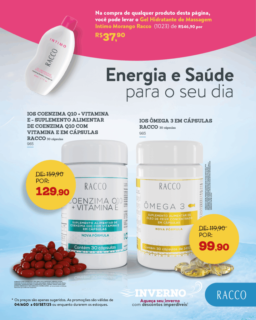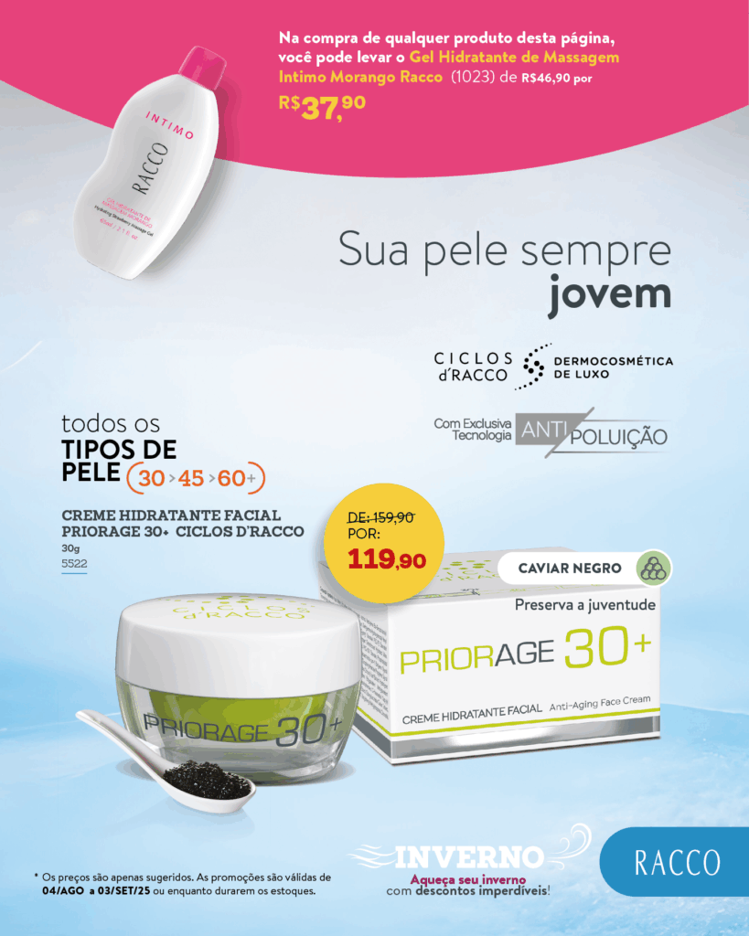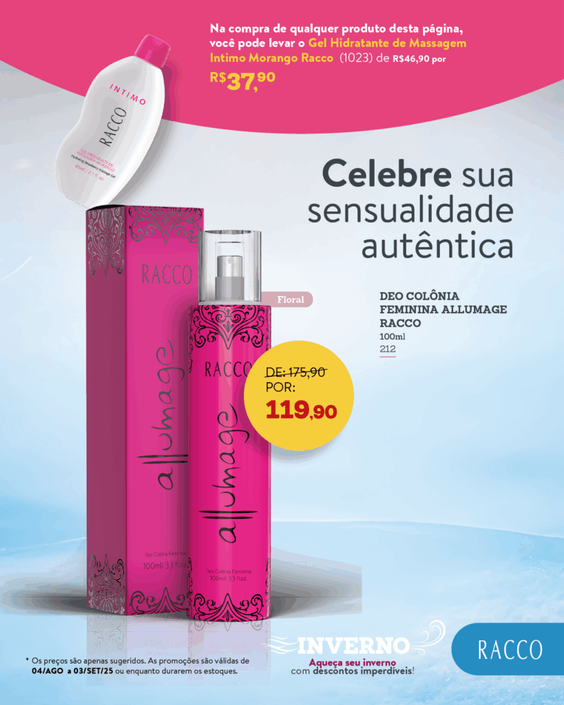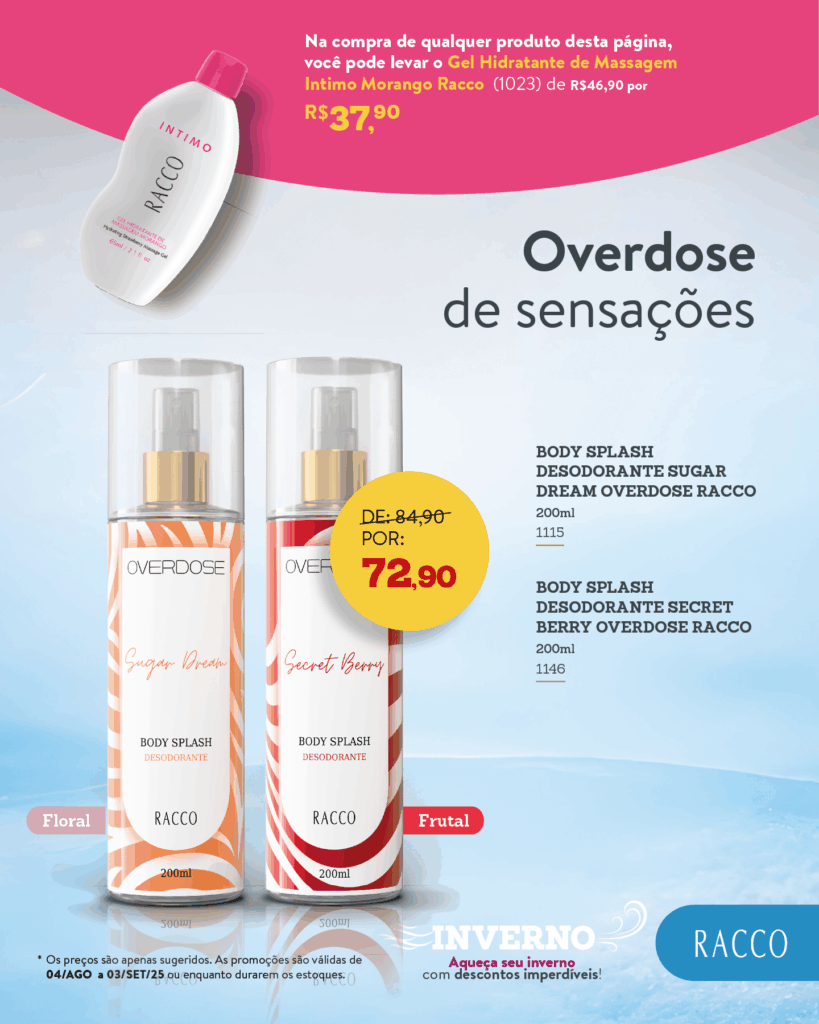 🍓 E tem mais: na compra de qualquer produto da página 2 a 11, leve o Gel Hidratante de Massagem Íntimo Morango Racco (1023) de R$ 46,90 por R$ 37,90.